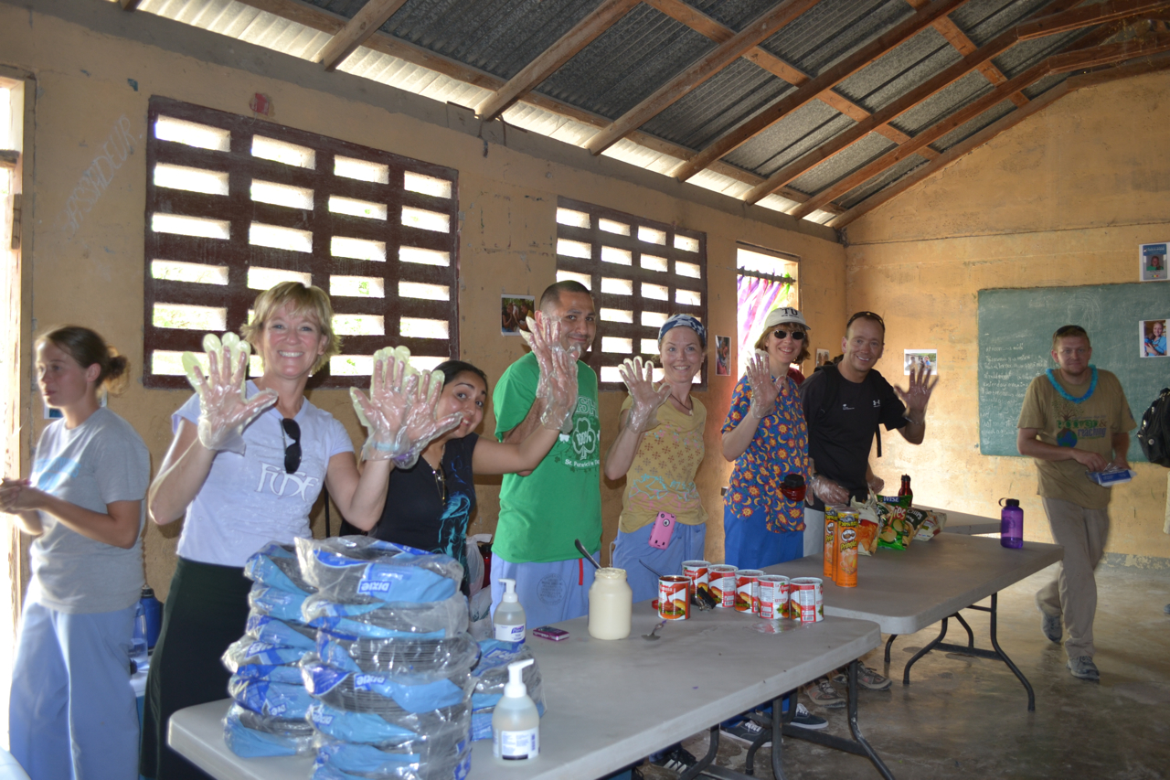 A year ago Kacie Davis decided to come to Haiti to serve for a year as a nurse in the NVM medical clinic. She was the first long term American at NVM... but certainly not the last! She has been a huge inspiration to me over the past year and I am going to miss her so much. She is loving, caring, practical, strong, and beautiful. She has made so many people's lives better here... Haitians and Americans included. Her partner in crime, Aubree, planned and threw a surprise party for her in the village and it was a blast! Our church (Grace Community) team that was here cooked and served over 500 meals to kids and families in Chambrun that day and it was so much fun to see all the blans and Haitians hanging out together. Aubree and Erica put together a 27 minute long video of photos and video for Kacie of her year here that we all cried through later that evening.